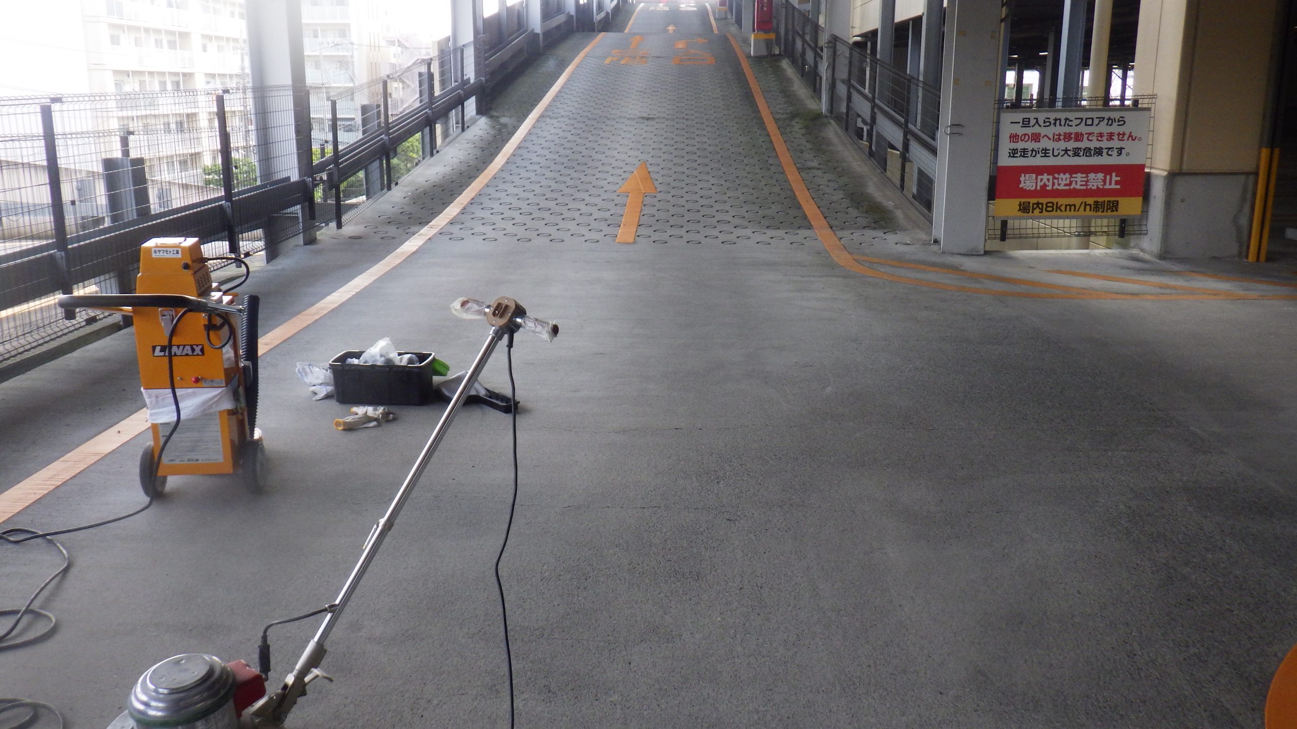 改修:横浜市某商業施設立体駐車場部分防水工事 超速硬化ウレタンスプレー防水 施工前 スプレー吹付 施工後 場所 横浜市 工事内容 工法:MU-1E (シーカ・ジャパン) コメント 立体駐車場の部分防水施工になります。 既存の状態から研磨・クラック補修・超速硬化ウレタンスプレー吹付まで施工いたしました。